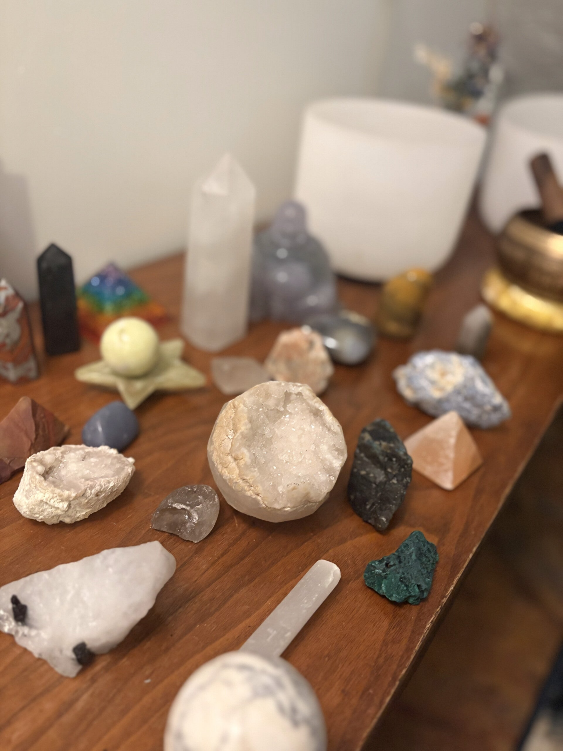 You can choose to hold a crystal or two of your choice during the treatment. Additionally, I place crystals around your body where needed. Crystals enhance energy flow and support the healing process. Each crystal emits its own unique vibrational frequency, which can help balance and align the chakras.